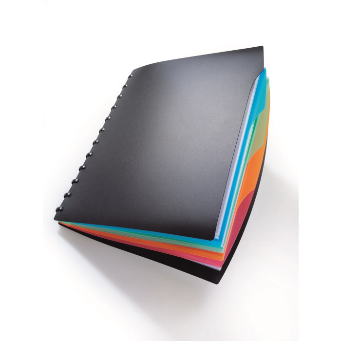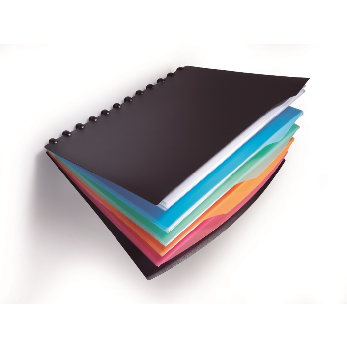 Štýlová katalógová kniha formátu A4 dodávaná s 20 obalmi a 4 farebnými rozraďovačmi. Rozšíriteľná náhradným balením obalov obj. kód DU2428 19 do maximálnej kapacity 35 obalov.