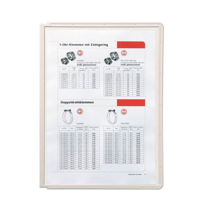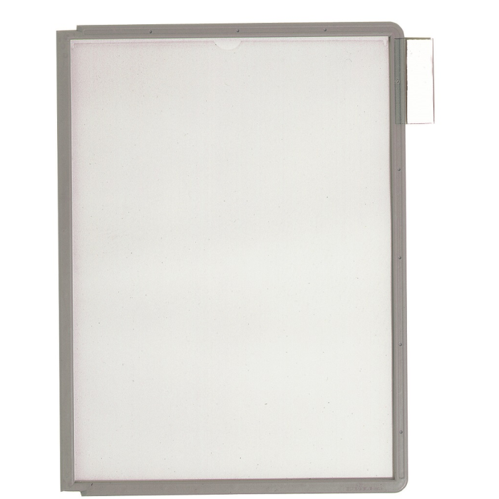 Displejový panel vyrobený z matného antireflexného polypropylénu pre systém Sherpa, kovové držiaky a rotačný stojan. Vložený materiál je kopírovateľný a skenovateľný. Pevný farebný rám s pozíciami pre indexy. Formát A4. Balenie 5 ks. Farba rámu: šedá Popis: pozície pre indexy