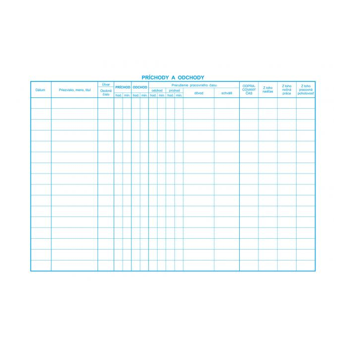 Tlačivo z oblasti práce a mzdy. Kniha príchodov a odchodov, A4, 30 listov.