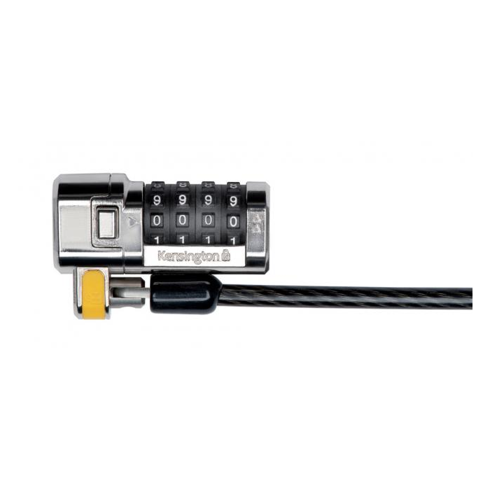 Na ochranu notebooku stačí bezpečnostnú kotvu zámku s 10 000 možnými kombinačnými kódmi zasunúť do slotu Kensington Security Slot™. K zaisteniu stačí jedna ruka a nie je nutné používať kľúč. Kábel z uhlíkovej ocele je odolný voči prerezaniu a môžete ho ukotviť k stolu, či inej pevnej konštrukcii.