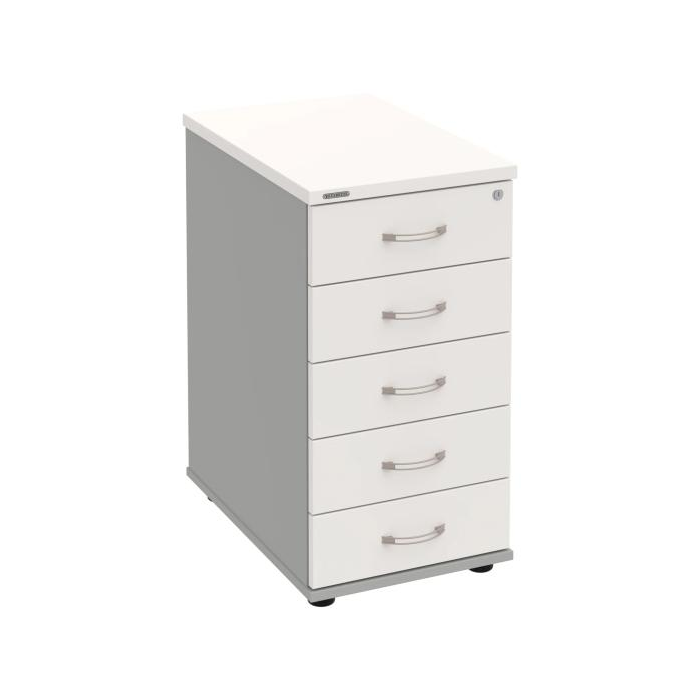 Kontajnery - všetko uložené a vždy poruke. Kontajnery sa väčšinou umiestňujú pod stoly. Mobilné modely sú vybavené kolieskami, je možné ich premiestniť podľa potreby. Základným materiálom korpusov je kvalitná laminovaná drevotriesková doska hrúbky 18 mm. Pre dlhšiu životnosť je na horný diel korpusu použitá doska, ktorej hrúbka je 25 mm. Korpusy a čelá zásuviek sú chránené proti poškodeniu hranou ABS 2 mm. Kontajnery sú vybavené zámkom s centrálnym zamykaním. Vďaka integrovanému systému STOP-CONTROL s centrálnym zámkom u väčšiny kontajnerov sa nemusíte báť prevrhnutiu kontajnera alebo prípadného privretia ruky. Systém zaručí, že pri otvorení jednej zásuvky sa ostatné zásuvky automaticky zablokujú. Zásuvky sú z plastu, ktorý je ľahko umývateľný a vhodný pre jednoduchú údržbu. Praktickou súčasťou vrchnej zásuvky je prehľadný organizér a priestorové deliace priečky. Vaše ceruzky, sponky a ďalšie kancelárske potreby budú vždy na poriadku. Organizér a deliace priečky sú súčasťou každého kontajnera. Na kontajnery Hobis sa vzťahuje päťročná záruka.