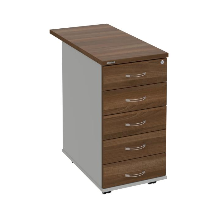 Kontajnery - všetko uložené a vždy poruke. Kontajnery sa väčšinou umiestňujú pod stoly. Mobilné modely sú vybavené kolieskami, je možné ich premiestniť podľa potreby. Základným materiálom korpusov je kvalitná laminovaná drevotriesková doska hrúbky 18 mm. Pre dlhšiu životnosť je na horný diel korpusu použitá doska, ktorej hrúbka je 25 mm. Korpusy a čelá zásuviek sú chránené proti poškodeniu hranou ABS 2 mm. Horná doska ma hĺbku 80 cm. Kontajnery sú vybavené zámkom s centrálnym zamykaním. Vďaka integrovanému systému STOP-CONTROL s centrálnym zámkom u väčšiny kontajnerov sa nemusíte báť prevrhnutiu kontajnera alebo prípadného privretia ruky. Systém zaručí, že pri otvorení jednej zásuvky sa ostatné zásuvky automaticky zablokujú. Zásuvky sú z plastu, ktorý je ľahko umývateľný a vhodný pre jednoduchú údržbu. Praktickou súčasťou vrchnej zásuvky je prehľadný organizér a priestorové deliace priečky. Vaše ceruzky, sponky a ďalšie kancelárske potreby budú vždy na poriadku. Organizér a deliace priečky sú súčasťou každého kontajnera. Na kontajnery Hobis sa vzťahuje päťročná záruka.