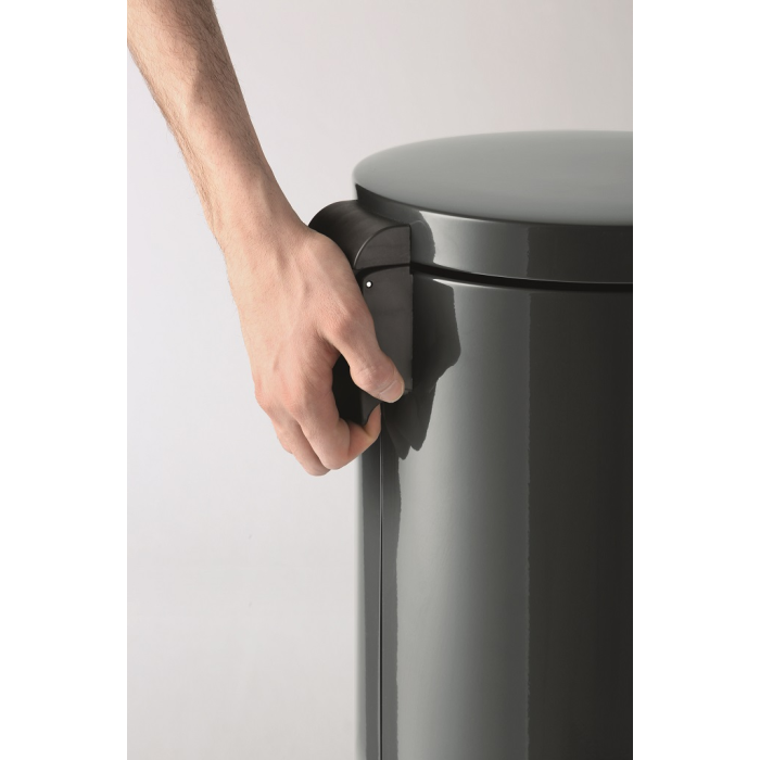 Odpadkový kôš na papier z kovu vybavený vyberateľnou vnútornou nádobou z plastu a plastovou objímkou na vrecko na odpadky. Spodná časť z plastu proti korózii a pre lepšiu stabilitu. Veko na pedál sa zatvára ticho. Objem 20 l, rozmery 360 x 455 mm.