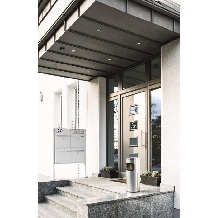 Smetný kôš na papier a popolník v jednom. Objem koša 17 l, výška 630 mm, priemer 250 mm. Objem popolníka 2 l, výška 60 mm, priemer 240 mm. Farba: strieborná