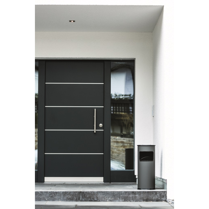 Kovový kôš na odpadky s vyberateľným zinkovým vnútrom a vyberateľným popolníkom naplneným pieskom /1,5 kg/ . Vhodný na použitie v interiéry aj v exteriéry. Objem koša 17 l, výška 620 mm, priemer 260 mm. Objem popolníka 2 l. Farba antracitová.