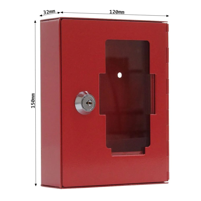 Kovová skrinka na núdzový kľúč bez kladivka, červená