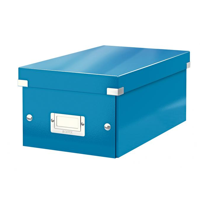 Atraktívna archivačná krabica vhodná na použitie v kancelárii i v domácnosti. Ideálna ukladanie DVD. Pevné a stabilné prevedenie. Materiál silný drevnatý kartón potiahnutý laminom. Úchyty, rámček na štítok, vystužené rohy krabice a spojovacie cvoky vyrobené z kovu. Krabica je dodávaná rozložená, jednotlivo zabalená. Veľmi skladná pri nepoužívaní. Rormery 206×147×352 mm. Farba modrá.