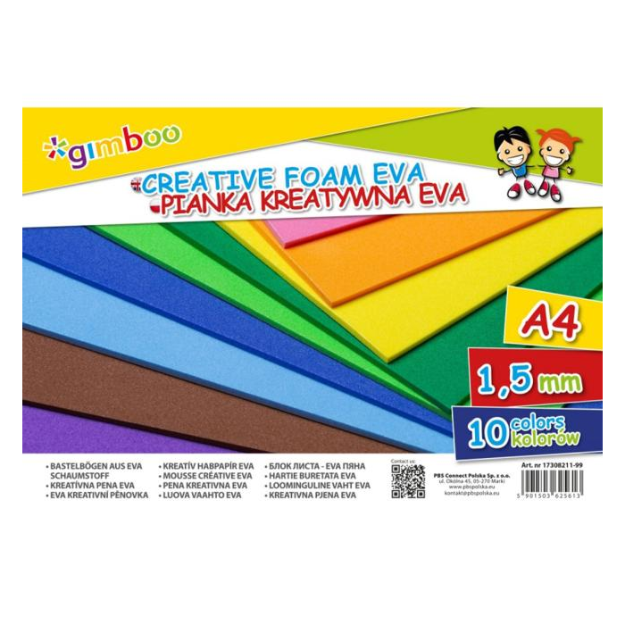 Kreatívna pena GIMBOO Eva, A4, vo fólii, 10 farieb, 1,5 mm