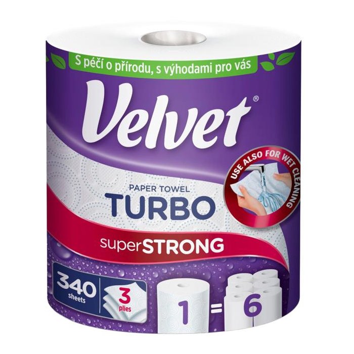 Utierky značky Velvet sú spoľahlivým pomocníkom pri každodennom upratovaní kancelárskych priestorov, či domácnosti. Turbo Super Strong sú pevné 3-vrstvové utierky, dajú sa použiť ako suché, tak aj navhlčené s vodou. Sú výnimočne savé a odolné.