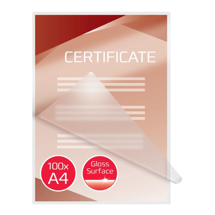 Praktické riešenie pre každodenné použitie chrániace a zdokonaľujúce hodnotné listy prezentácií, referenčných zoznamov, produktových listov, upozornení a pod. Lesklé vyhotovenie, hrúbka 2 × 100 mikrónov. Formát A4. Balenie po 100 kusoch.