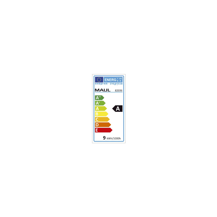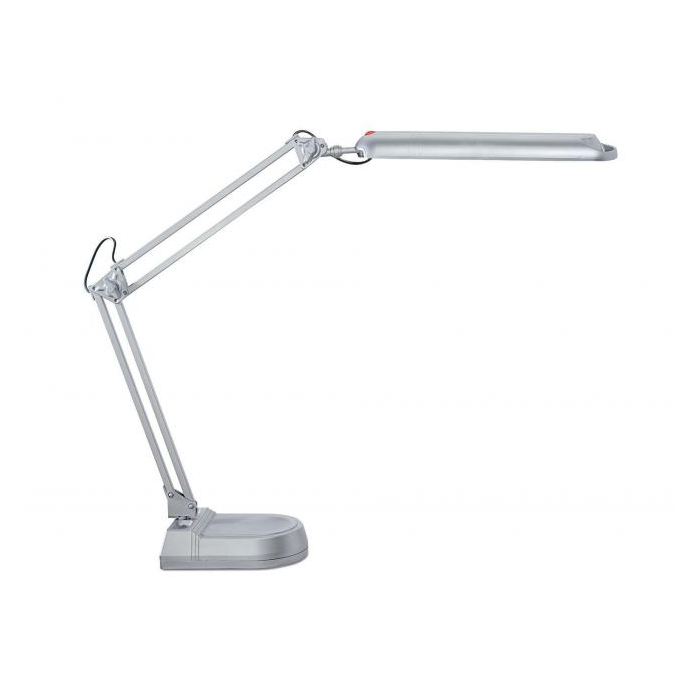 Lampa so základňou energeticky úspornej triedy „A“ s LED žiarovkami so životnosťou cez 20 000 hodín bez možnosti ich výmeny. Svietivosť 2 000 luxov pri vzdialenosti 35 cm od stola, svetelný tok 400 lumenov, extrémne nízka spotreba energie cca 9 kWh/ 1 000 h. Sklopná a otočná plastová svetelná hlava. Veľkosť hlavy cca 33 × 7 cm, stabilný podstavec 22 × 14,5 cm so závažím. Materiál kov a plast. Dĺžka spodného ramena 33 cm, horného 34 cm, výška normálnej pracovnej pozície 45 cm, dĺžka kábla 1,8 m. Farba strieborná.