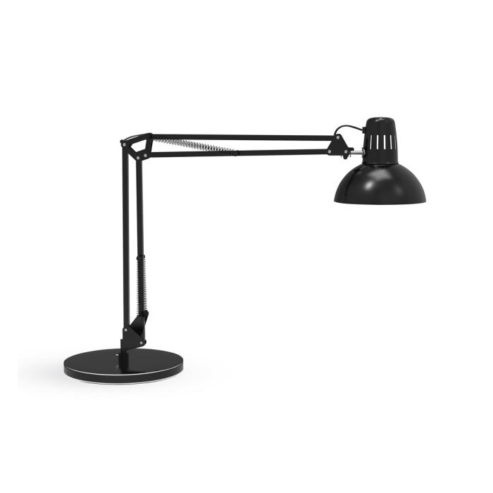 Vydarená dizajnová klasika s presvedčivým pomerom cena/výkon. Flexibilne nastaviteľné vo všetkých smeroch. Mimoriadne stabilný: ťažká základňa umožňuje ďaleko predĺženie ramena. Profesionálne pracovné svetlo, vysoká kvalita svetla. Vhodné pre 9,5W LED žiarovky (pätica E27) MAUL. Bez obmedzenia vysunutia ramena. Stabilná základňa. Noha: podstavec. Materiál: hlava: kov - rameno: kov - základňa: vážená vložka, podložka vhodná na stôl. Rozmery: výška: 47 cm - hlava: Ø 17 cm - rameno: dĺžka pod 35 cm, dĺžka nad 35 cm - základňa: Ø 23 cm. Farba čierna.