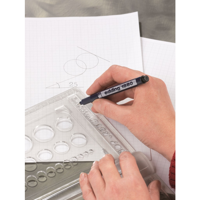 Jednorazový liner s vláknovým hrotom v kovovej objímke so svetlostálym, vode odolným pigmentovým atramentom. Ideálny na náčrty, technické kreslenie a prácu so šablónami. Farba čierna. Šírka stopy 0,35 mm. Väčšie balenie 10 ks.