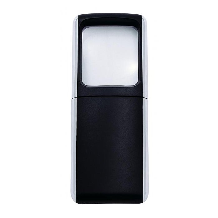 Lupa s podsvietením. Veľkosť cca 35×38 mm, 3-násobné zväčšenie. 2 batérie 3V sú súčasťou balenia.