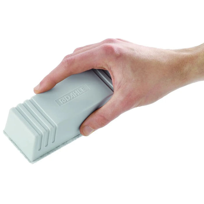 Vysokokvalitná magnetická stierka s vymieňateľnými filcovými vankúšikmi na biele tabule. Farba sivá.