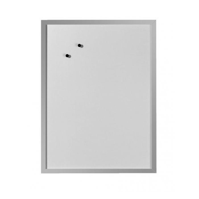 Biela magnetická popisovateľná tabuľa so sivým dreveným rámom. Rozmery: 40x60 cm. Úprava: magnetická.