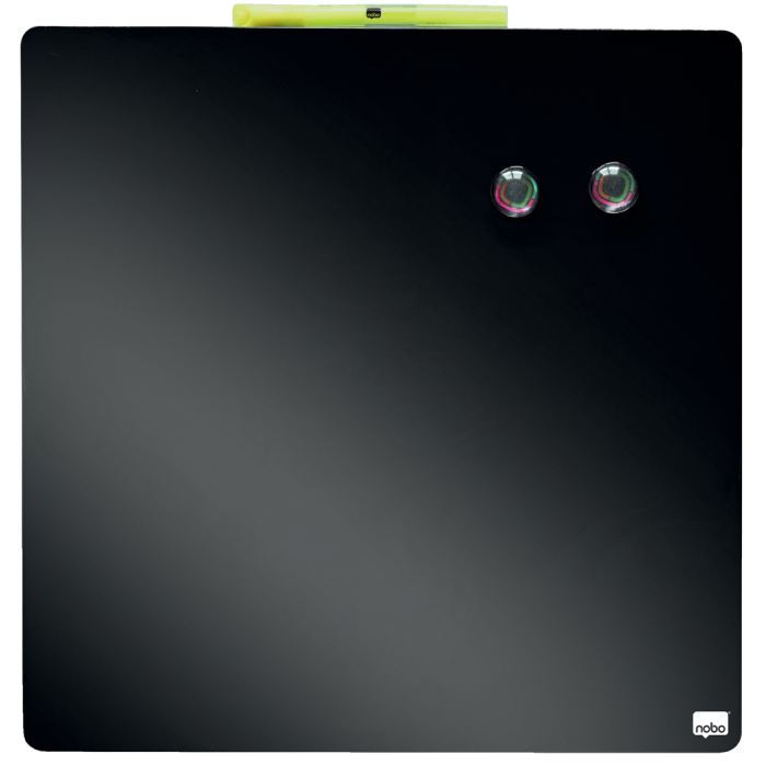 Kompaktné magnetické dielce stierateľné za sucha majú ideálnu veľkosť pre každý pracovný stôl, doma i v kancelárii. Obsahujú dva magnety, biely popisovač s mazacou hubou a montážnu penovú pásku. Farba: čierna. Rozmery 360 × 360 mm.