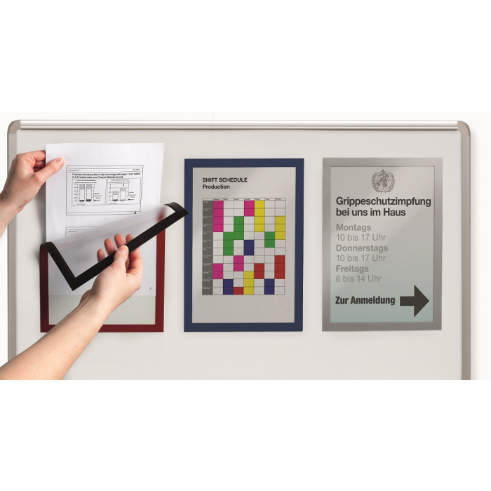 Informačný panel s magnetickou časťou na zadnej strane rámika na jednoduché a rýchle vkladanie informácie formátu A4. Vhodný na hladké magnetické povrchy, napr. magnetickú tabuľu. Farba modrá. V balení 5 ks.