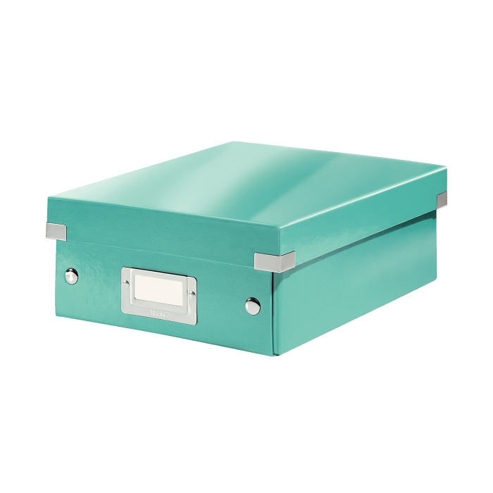 Malá štýlová skladacia krabica s vekom a s rámčekom na štítok. Na usporiadanie nabíjačiek, káblov a ďalšieho vybavenia kancelárie. Veľkosť S. Na prvý pohľad vidíte, čo sa vojde dovnútra! Výška krabice bola navrhnutá tak, aby vám poskytla dostatok priestoru na uloženie príslušenstva a zároveň zabránila skladaniu vecí na seba. Na vylepšenie usporiadania obsahu krabice použite priložený vnútorný systém priehradiek. Môžete rozdeliť krabicu na 2 alebo 3 časti a zabrániť tak miešaniu káblov alebo fotiek. Inteligentná skladacia konštrukcia: rýchle a jednoduché zloženie bez nutnosti použitia skrutiek a možnosť opätovného rozloženia na úsporu miesta, keď krabicu práve nepotrebujete. Moderný vzhľad a farby na skrášlenie vašej kancelárie alebo domova. Lesklé vyhotovenie vytvára prvotriedny vzhľad škatule a umožňuje dlhodobé používanie a jednoduché utieranie prachu. Rámček na štítok pre jednoduché označenie obsahu. Materiál pevný kartón potiahnutý polaminovaným papierom. Farba ľadovo modrá.