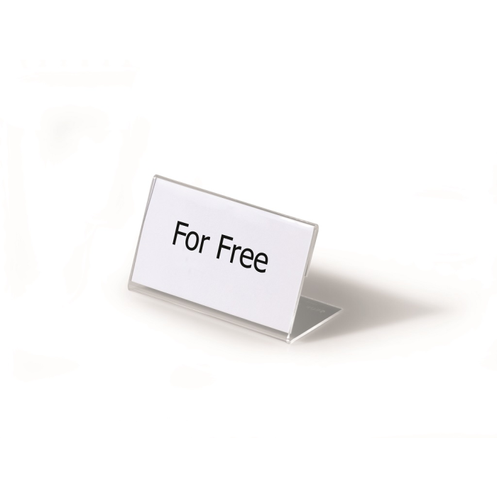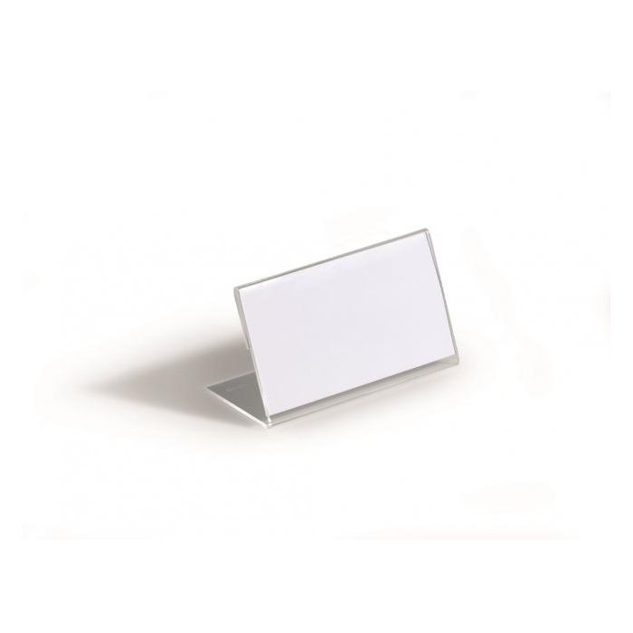 Stabilná stolová menovka „L“ profilu vyrobená z akrylu. Vhodná na konferencie, recepčné pulty, ceny tovarov a popis produktov. Väčšie balenie 10 ks. Rozmery: 52x100 mm