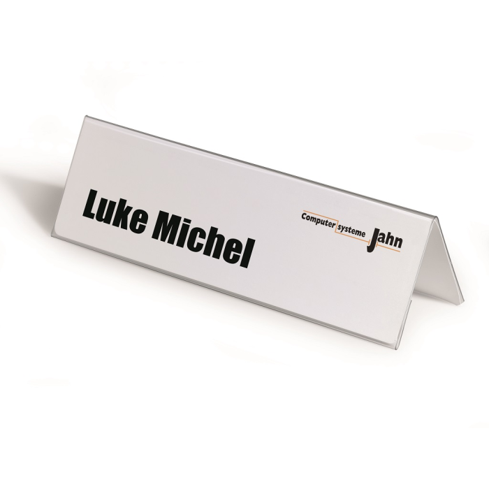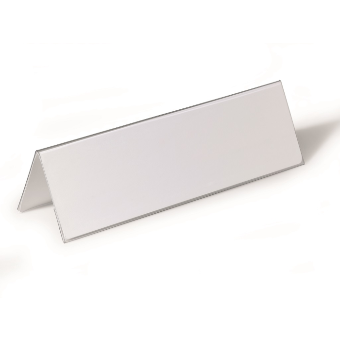 Obojstranne čitateľná stolová menovka z pevného PVC, vhodná na konferencie, recepčné pulty, ceny tovarov a popis produktov. Dodávaná s vymeniteľnou prázdnou kartou. Väčšie balenie 25 ks.