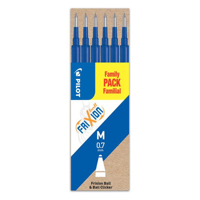 Náplň s prepisovateľným atramentom do rollerov Pilot FriXion Clicker, FriXion Ball. Balenie 6 ks. Nápľň modrá.