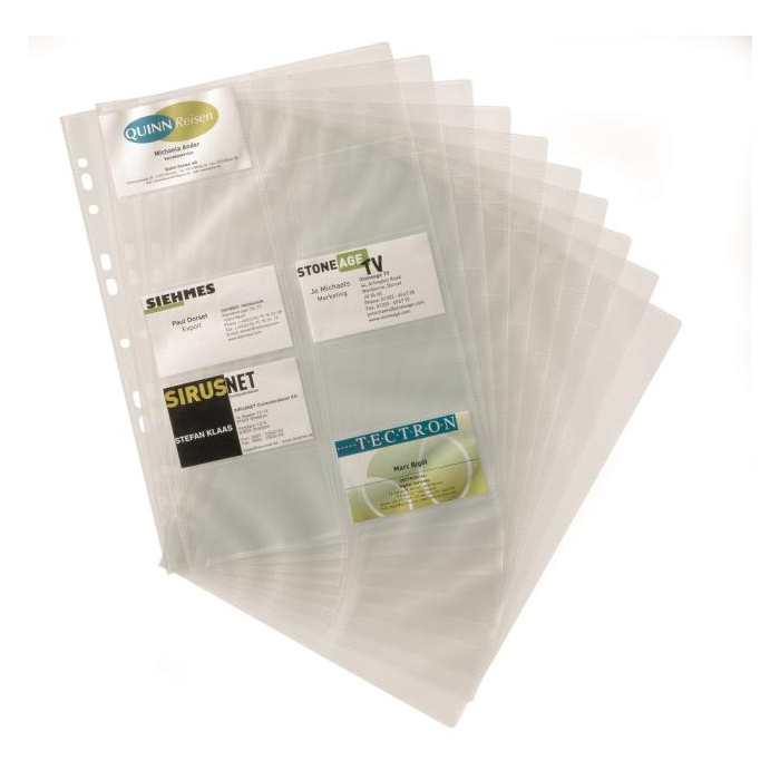Náhradné obaly do vizitkárov Visifix A4 (obj.kód DU238858, DU238807) a VISIFIX PRO DU246258. V balení 10 obalov s kapacitou na 200 vizitiek.
