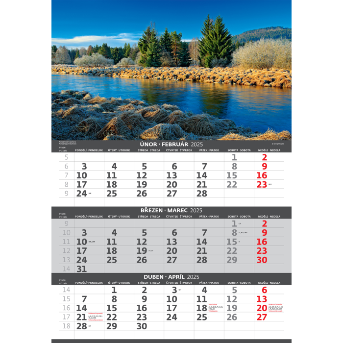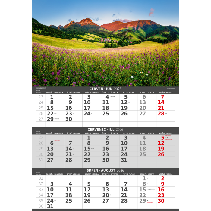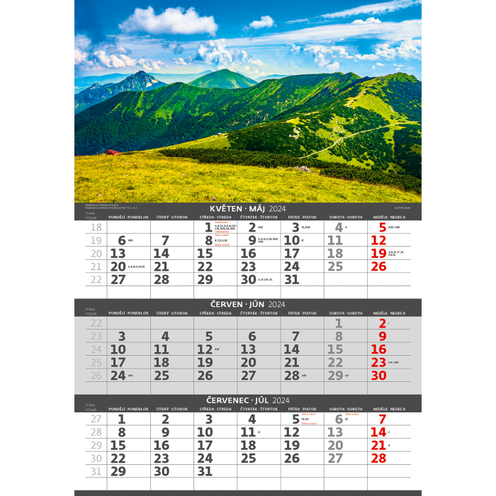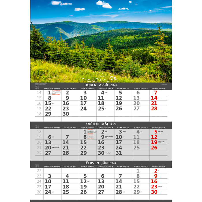 Kalendárium: české/slovenské trojmesačné so sviatkami európskych štátov (CZ / SK / A / B / D / F / H / CH / I / PL / RUS / UKR)