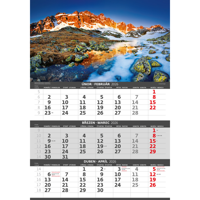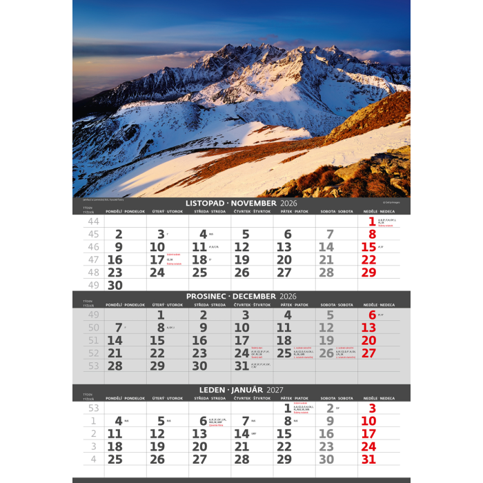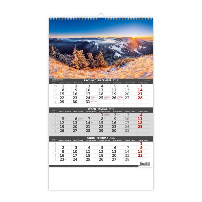 Nástenný kalendár 3-mesačný Hory 31,5 x 45 cm 2026