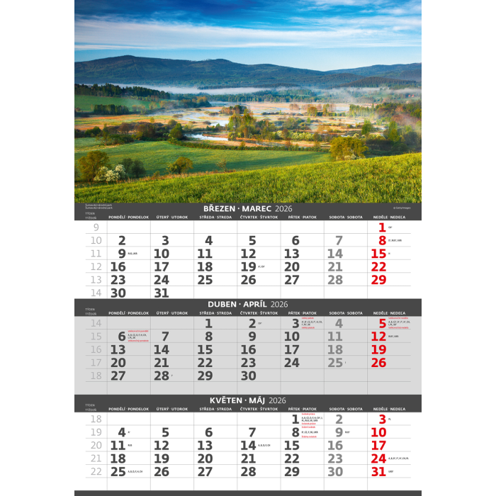 Formát kalendára: 31,5 x 45 cm