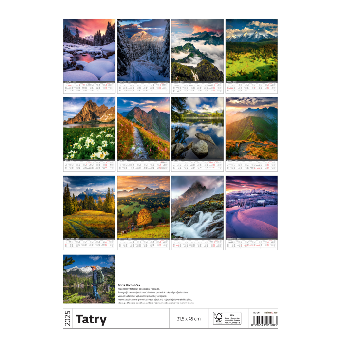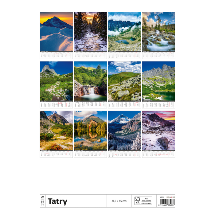 Nástenný kalendár Tatry 31,5 x 45 cm 2026