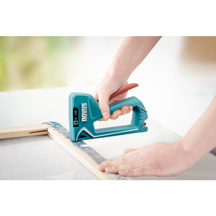 Hobby nastreľovačka z plastu na príležitostné použitie v domácnosti a záhrade. Spodný plniaci zásobník s bezpečnostnou poistkou na ľahké plnenie spinkami, zámok rukoväte pre skladovanie, kontrolné okienko na sledovanie stavu naplnenia zásobníka. Kapacita: (A) spinky 100 ks.