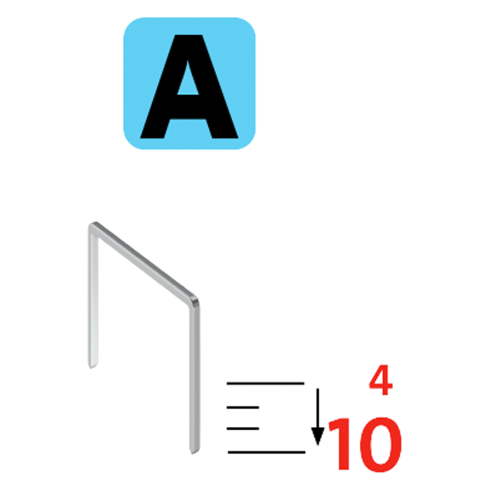 Malá ručná nastreľovačka s vysokokvalitným plastovým krytom na univerzálne použitie, napr. na rýchle napnutie tkaniny do rámu. Spodný plniaci zásobník s bezpečnostnou poistkou na ľahké plnenie spinkami, zámok rukoväte pre skladovanie, kontrolné okienko na sledovanie stavu naplnenia zásobníka. Kapacita: (A) spinky 140 ks.