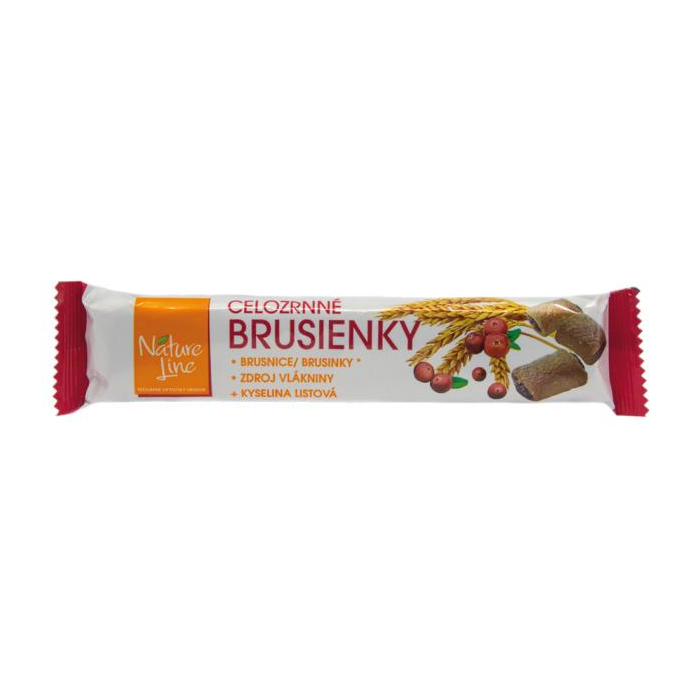 Energetická vzpruha pre športovcov a pre organizmus, zaťažovaný fyzickou a psychickou námahou. Vďaka vláknine priaznivo ovplyvňujú tráviace procesy a peristaltiku čriev. Vhodné pre tehotné ženy aj pre diabetikov. Brusienky s brusnicou náplňou a fruktózou. Hmotnosť 65 g.