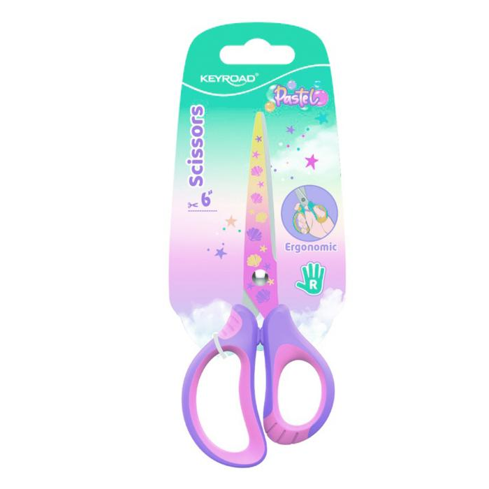 Nožnice KEYROAD Pastel Deco ergonomické, 15,5 cm, blister, mix farieb