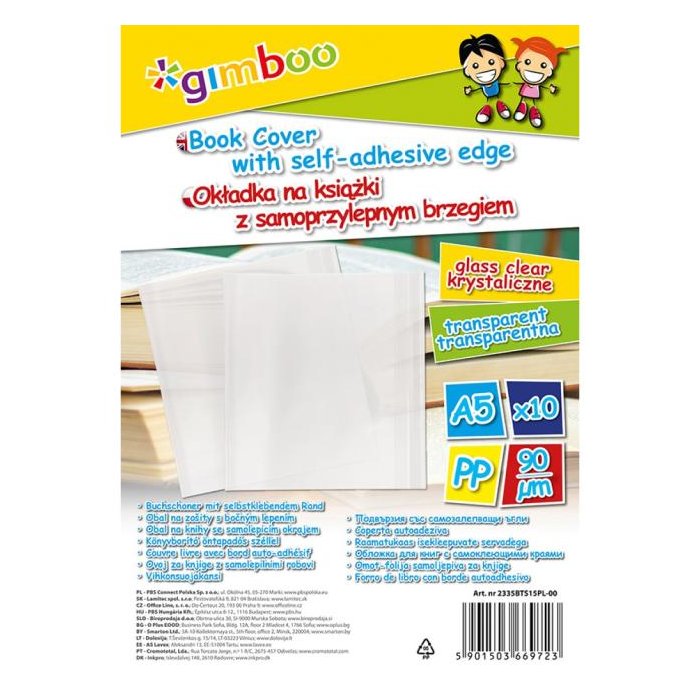 Obal na zošity GIMBOO samolepiaci číry, 90 mic.m, 25 × 45 cm, 10 ks