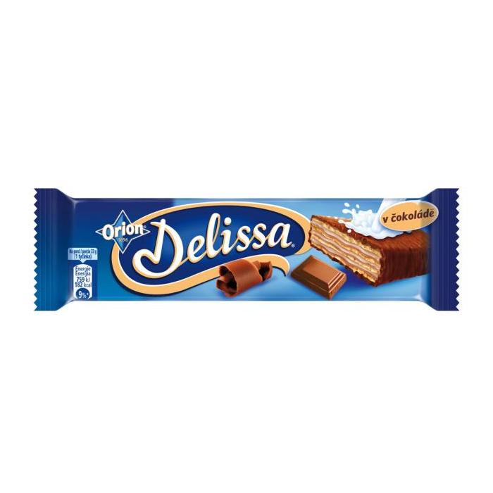 Oblátka 17,9% s kakaovou náplňou 49,7% máčaná v mliečnej čokoláde 32,4%.