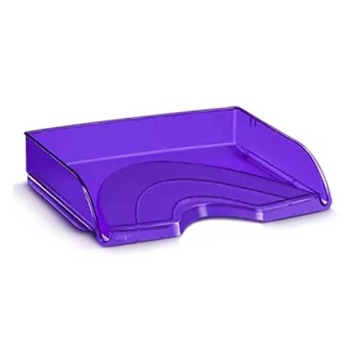 Elegantný odkladač s možnosťou vertikálneho stohovania alebo stohovania stupňovito dozadu. Široký otvor vpredu umožní ľahký prístup k dokumentom a ich triedenie. Je vhodný na dokumenty do veľkosti 24 × 32 cm. Celkové rozmery 341 × 265 × 65,4 mm, kapacita 420 listov (80 g / m²). Materiál 100% odolný vysokokvalitný plast. Väčšie balenie 10 ks. Farba transparentná fialová.