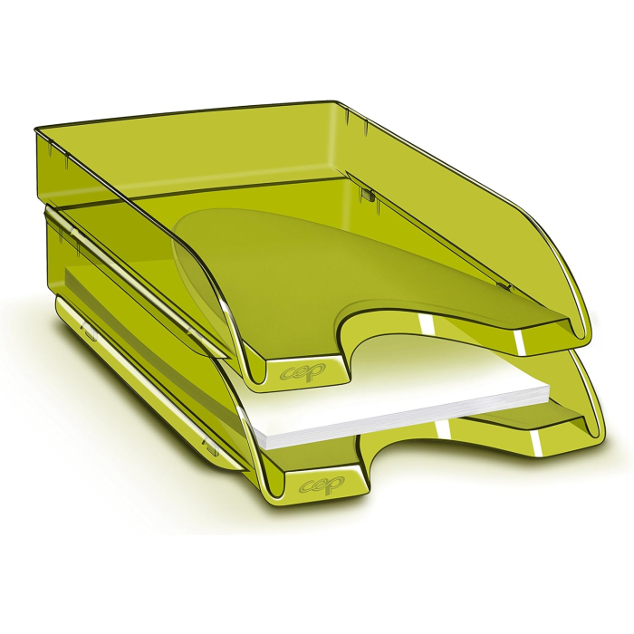 Vďaka štíhlym a elegantným líniám si tento odkladač nájde miesto nielen na stole, ale aj na bočnom stole alebo v skrini. Je vhodný na dokumenty do veľkosti 24 × 32 cm. Široký čelný výrez umožňuje ľahké vyberanie obsahu. Odkladač je stohovateľný vertikálne, aj stupňovito dozadu. Kapacita 450 listov (80 g / m²). Celkové rozmery 257 × 348 × 66 mm. Materiál 100% odolný vysokokvalitný plast. Jednotlivé kusy sa môžu navzájom jemne farebne líšiť. Väčšie balenie 10 ks. Farba transparentná zelená.