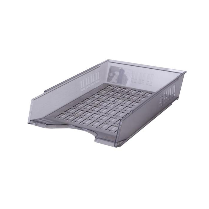 Plastový odkladač na papiere formátu A4 s možnosťou stohovania dozadu. Úprava priehľadná. Väčšie balenie 10 ks.