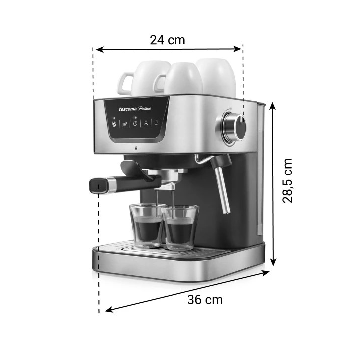 Moderný kávovar na prípravu kávy espresso a kávy s mliečnou penou, napr. cappuccino, macchiato, latte a pod. Programy na 1 a 2 šálky možno ľahko individuálne nastaviť, manuálny režim umožňuje prípravu ľubovoľného množstva kávy. Výkonné tlakové čerpadlo, výrobník horúcej pary a vody, objemný zásobník na vodu a ohrevná plocha na šálky. Vyrobený z prvotriednej nehrdzavejúcej ocele, kvalitného kovu a odolného plastu.