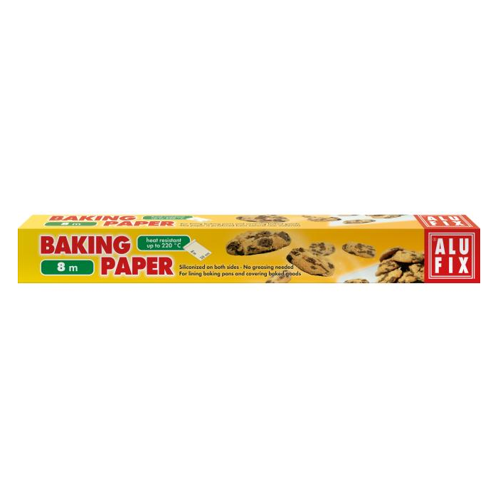 Papier na pečenie 8m je biely, obojstranne silikonovaný, balený v krabičke, pečivo sa nelepí a neprihára. Chráni potraviny aj kuchynský riad. Jednoduchá manipulácia.
