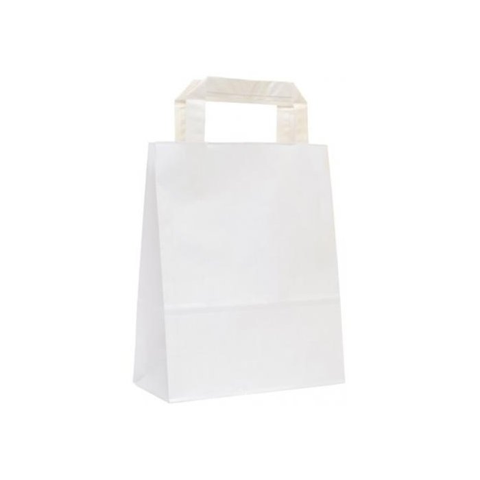 Papierová taška na univerzálne použitie. Farba biela. Ušká ploché. Cena za kus. Rozmery v mm