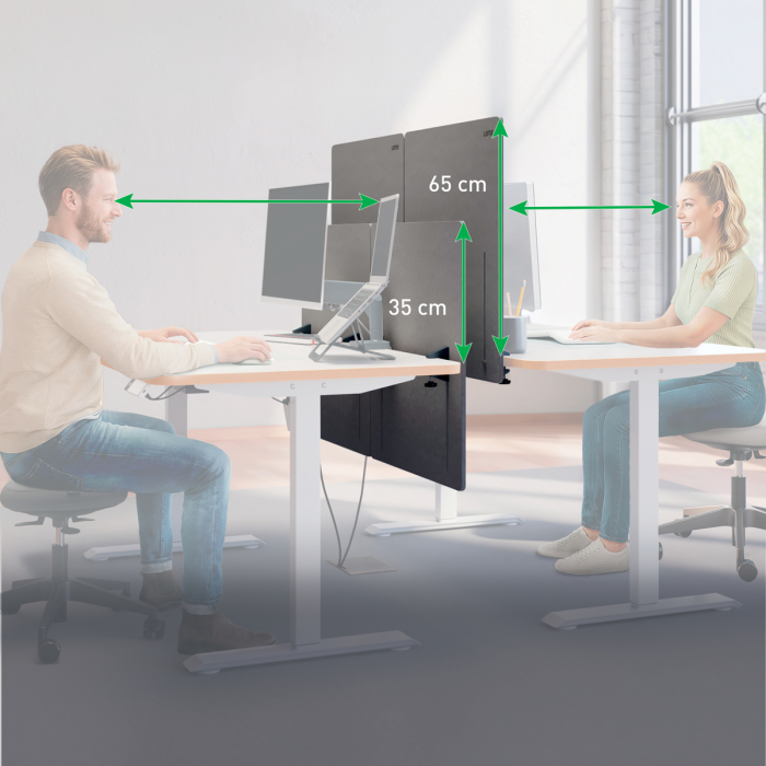 Medzery medzi doskou stola a deliacimi panelmi pre káble a