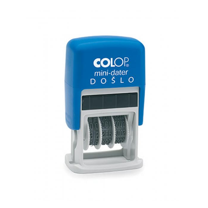 Samofarbiaca dátumová pečiatka v modernom dizajne, s textom DOŠLO (L2). Integrovaná 2-farebná pečiatková poduška modrá/ červená, kde je text modrý a dátum červený. Výška odtlačku 4 mm. Náhradná poduška E/10 modrá/ červená.