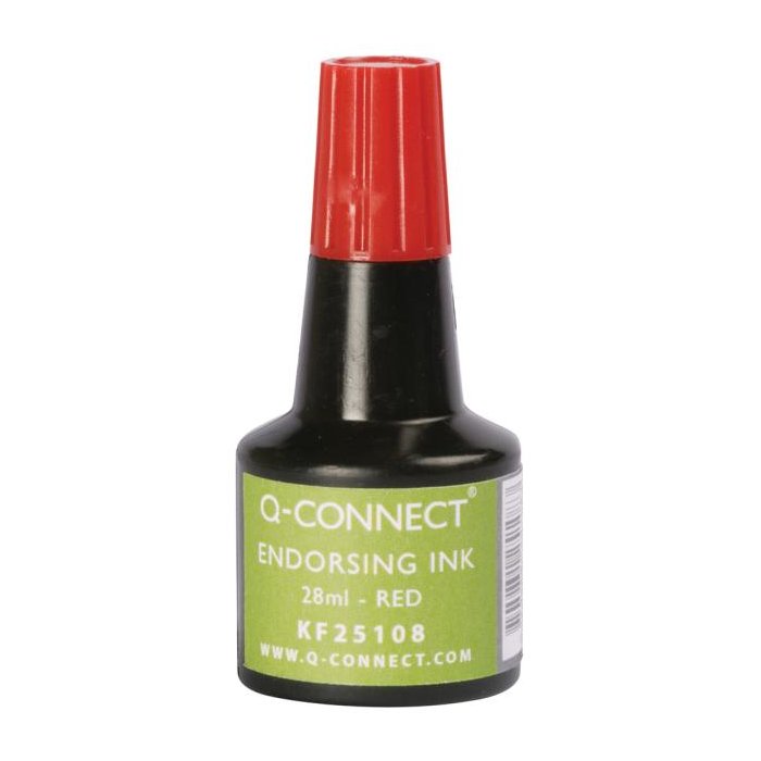 Q-Connect univerzálna pečiatková farba bezolejová, vhodná na gumené a samofarbiace pečiatky. Objem 28 mℓ. Väčšie balenie 10 ks. Farba červená.