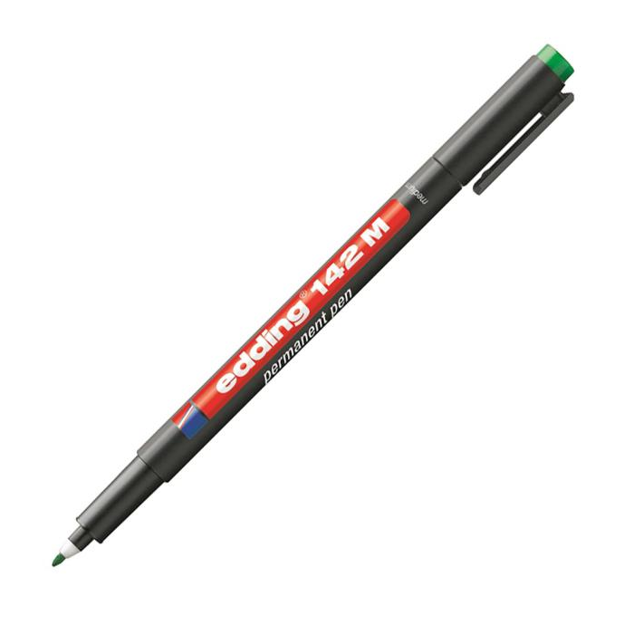 Permanentný popisovač vhodný na popisovanie folií pre spätnú projekciu, na sklo a umelú hmotu. Vodeodolný, zmazateľný iba liehom. Hrot okrúhly, šírka stopy 1 mm. Farba zelená.