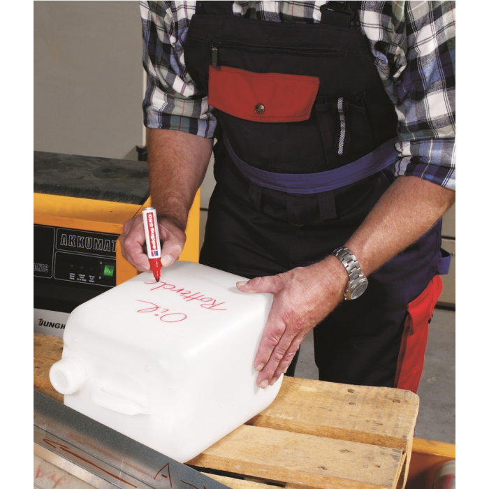 Popisovač s permanentným atramentom na popisovanie takmer na všetky materiály vrátane kovu, skla a umelých hmôt. Hliníkový obal. Hrot okrúhly, šírka stopy 3 - 4 mm. Dopĺňateľný atramentom edding T 25. Väčšie balenie 10 ks.