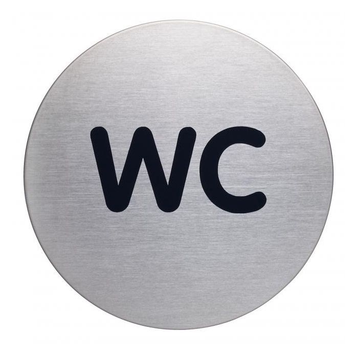 Piktogram na vysoko kvalitnej brúsenej nehrdzavejúcej oceli. Vytlačený symbol je odolný voči poškriabaniu a silnému opotrebeniu. Priemer 83 mm, vďaka lepiacej páske na zadnej strane sa piktogram dá použiť na rôzne povrchy. Farba strieborná, potlač čierna.