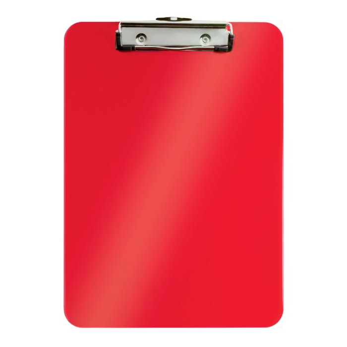 Pevná písacia podložka A4 na každodenné použitie v sviežej farbe WOW s dvojfarebným efektom. Silná kovová spona na uchytenie až 75 listov, háčik na zavesenie. Materiál polystyrol. Väčšie balenie 10 ks. Farba červená.